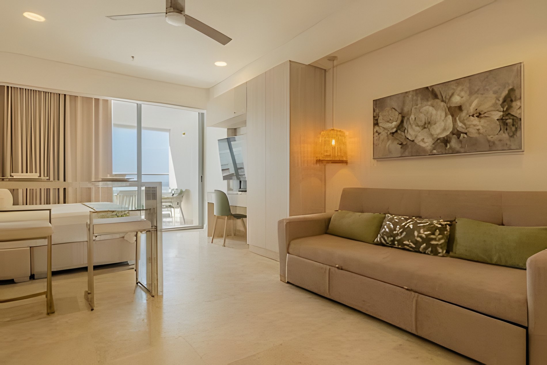 Tu estadía en Cartagena empieza a pasos del mar — desde el piso 14. Ubicada en un piso alto, esta suite privada en el edificio Cartagena Beach te ofrece más luz, más calma y una mejor sensación de amplitud. Un lugar pensado para llegar, respirar y sentirte cómodo desde el primer momento. A pocos pasos de la playa y a solo minutos del centro histórico, es ideal para parejas, nómadas digitales o viajeros que valoran el diseño, la tranquilidad y una buena ubicación.