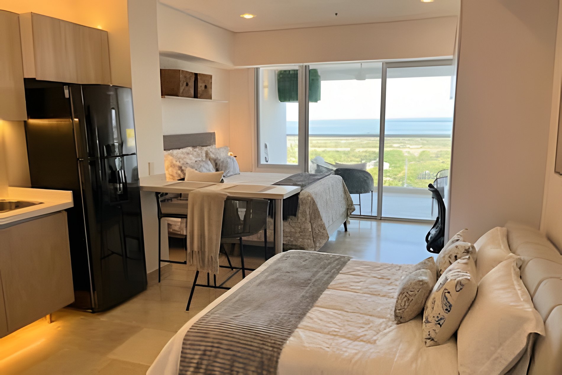 Olvídate del ruido de la ciudad. Al estar en un piso 15, disfrutarás de una brisa constante y una vista zen a la piscina desde tu balcón privado. Es el rincón ideal para tu café matutino o una copa de vino al atardecer. Ambiente: Diseño moderno, minimalista y lleno de luz natural. Clima Perfecto: Aire acondicionado de alta eficiencia para mantenerte fresco tras un día de sol. Confort: Cama premium vestida con blancos de alta calidad para un descanso profundo. Este exclusivo apartasuite en el piso 15 combina la elegancia de un hotel boutique con la funcionalidad de un hogar inteligente. Diseñado para viajeros exigentes y nómadas digitales, cada rincón ha sido pensado para maximizar la luz y la brisa del Caribe. El Espacio Principal: Zona de Descanso: Cama Premium con lencería de alta calidad y diseño abierto para una sensación de amplitud. Climatización: Aire acondicionado de última generación (silencioso y potente) para garantizar tu descanso total. Productividad y Conectividad: Dedicated Workspace: Escritorio ergonómico y silla cómoda, ideal para sesiones de teletrabajo. Internet Pro: Conexión Wi-Fi de alta velocidad (Fibra Óptica), perfecta para videollamadas y streaming. Tu Oasis Privado: Balcón con Vista Zen: Un espacio acogedor y privado con vista directa a la piscina. El lugar perfecto para empezar el día con un café o terminarlo viendo las luces de la ciudad. Detalles Extra: Cocina equipada para estancias cortas y largas. Baño moderno con acabados de lujo y toallas suaves. Acceso a todas las áreas sociales del edificio (Piscina, Sauna, turco, Spa, Jacuzzi, Coworking Lobby con servicio de conserjería y Seguridad 24/7). Puedes contactarnos a través de la aplicación de Airbnb Por favor tener en cuenta : 🔒 Para cuidar la seguridad y tranquilidad de todos los huéspedes y residentes: • Solo pueden ingresar las personas registradas en la reserva. • Una vez registrado en el edificio, no se permiten modificaciones de las personas registradas en la reserva. • No se permiten visitantes externos durante la estadía. Gracias por tu comprensión, esto nos ayuda a que todos disfruten una estadía sin preocupaciones.